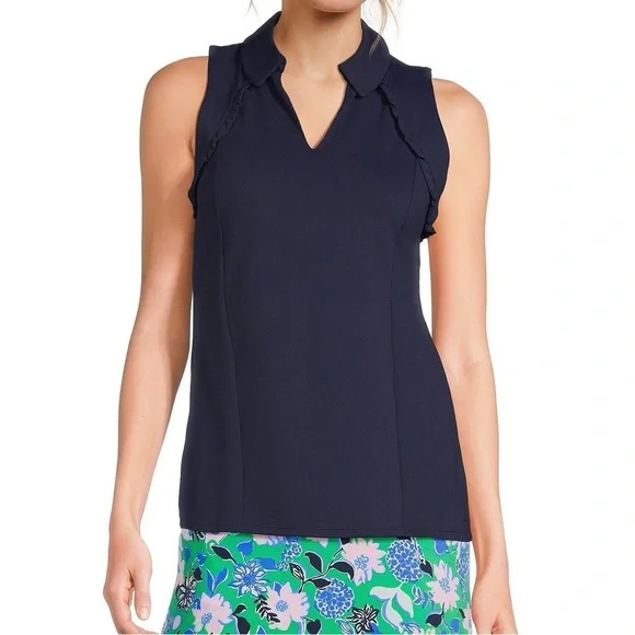 Lilly Pulitzer Martina Luxletic Knit Collared V-Neck Sleeveless Ruffle Top Small