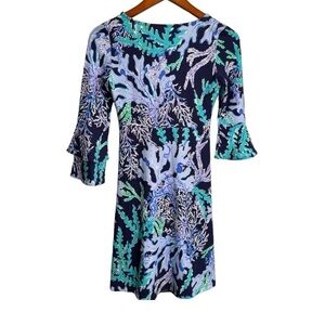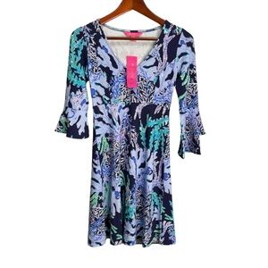 Lilly Pulitzer Raina Dress Deep Indigo Swish & Sway Tiered Sleeves XXS $168