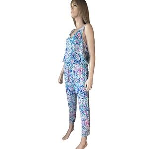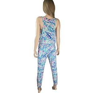 Lilly Pulitzer Rayon Jumpsuit Paulina Breakwater Party Wave Print Racer Back