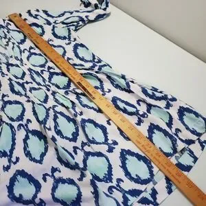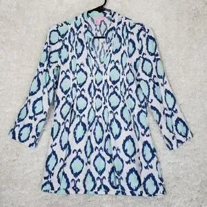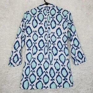 Lilly Pulitzer Sarasota Tunic Women XS Blue Mint Ikat Medallion Split Neck Top