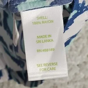 This Lilly Pulitzer tunic features a striking ikat-inspired medallion print in shades of blue and mint green. Designed with a split neckline and elegant pin-tuck detailing, this lightweight rayon top offers a relaxed yet polished silhouette perfect for resort wear or casual outings.