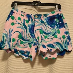 Beautiful Original Lilly Pulitzer shorts, blue floral design on pink