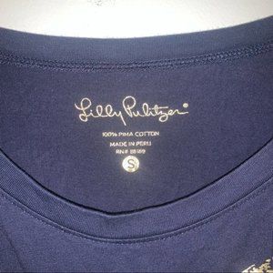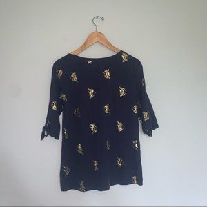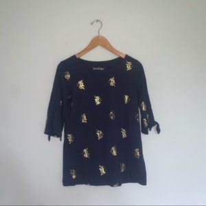 Lilly Pulitzer Shirt Size Small Navy Gold “Reel It In All Over” 3/4 Sleeve Flowy
