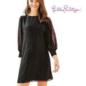Lilly Pulitzer Silk Maisel Dress Silver Metallic Sparkle Dotted Blouson Sleeve
