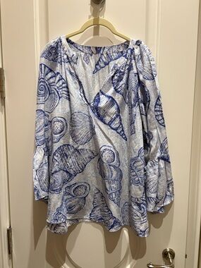 Lilly Pulitzer Vibrant Pink and Blue Off-Shoulder Blouse