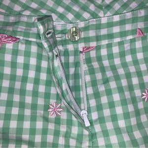 Lilly Pulitzer Vintage Gingham Hi-Rise Crop Pants Green White Butterfly Size 8 P