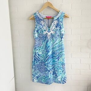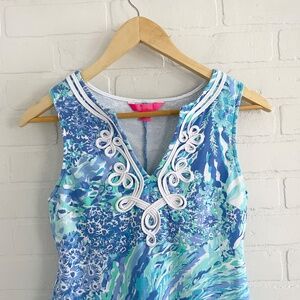Lilly Pulitzer Vintage style Mini Dress Daisy Water print Embroidered Blue XS