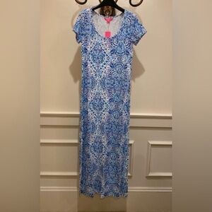 Lilly Pulitzer Wynne Maxi Dress Resort White Call My Shell Phone Blue Printed xl