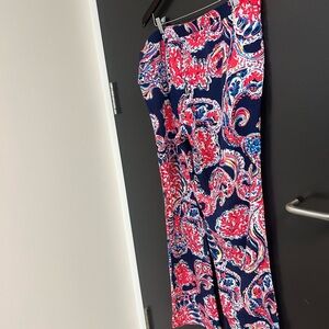 Lilly Pulitzer XL EUC with these boot cut flare pants, featuring a striking blue and red color palette. The flowing design ensures comfort and style, perfect for making a statement at any resort-inspired event. Experience the brand's signature flair with this eye-catching piece.