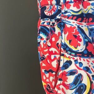 Lilly Pulitzer XL cotton Blue and Red Boot Cut Flare Pants EUC pockets cute!!!