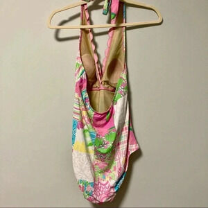 Lilly Pulitzer patchwork scalloped v neck one piece swimsuit