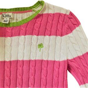 Lilly Pulitzer pink & white striped cable knit 100% cotton sweater