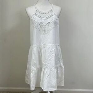 This elegant white sleeveless Lilly Pulitzer size 6 dress is perfect for any occasion. Its intricate design adds a touch of sophistication to your wardrobe.