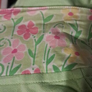 Lilly Pulitzer White Label light green polo shirt, size XS slim fit, has white collar and floral inner placket fabric and under collar. 4 button closure