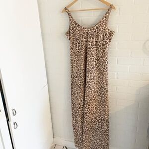 Lily Forest Maxi Dress Lepoard print Mobwife Cotton Beige tan brown Sz 6