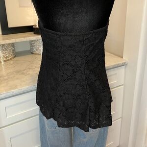 Lily Morgan Black Strapless Lace Like Halter Top. Only Worn Once Or Twice. Measurements Are In The Photos.