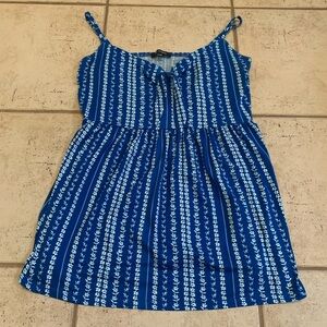 Get ready for summer with this adorable Lily Morgan mini dress! This dress features a vibrant blue and white floral pattern with a cute tie-front detail at the bust. The smocked back ensures a comfortable and flattering fit. It's a perfect piece for a casual day out, a picnic, or a beach vacation.