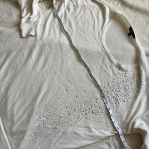Elevate your light academia edit with this Lily Morgan knit top, Size XL, in great condition and featuring metal stud detailing for a touch of gentle sparkle. Crafted in a soft, creamy knit with a V-neckline, long sleeves, and ribbed cuffs, this top blends cozy girl aesthetic with polished minimalism.