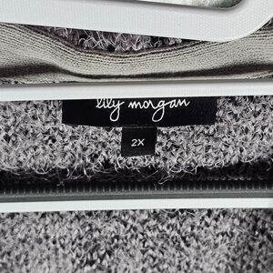 Lily Morgan Dark Grey Plaid Open Front Long Sweater Cardigan Size 2X - in excellent condition.