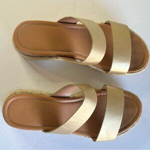 Lily Morgan Gold Espadrille Platform Sandals with Double Straps, Size 8