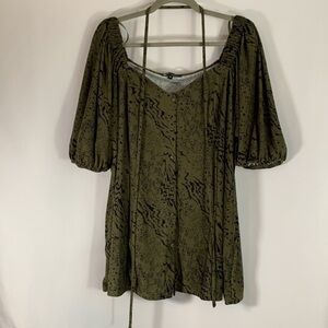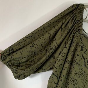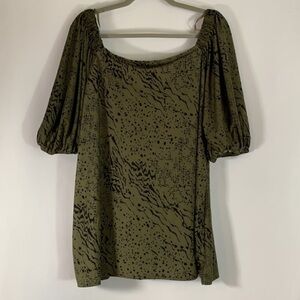 Lily Morgan Green & Black Splotchy Off-Shoulder Top NWT