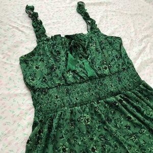 Lily Morgan Mini Dress Floral S Royal Green Black Tie Front Smocked Waist