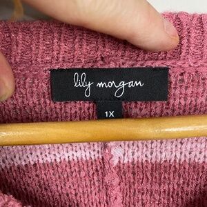Lily Morgan Pink Striped Women's Oversized V-neck Tunic Sweater Size 1x