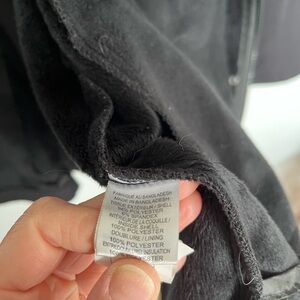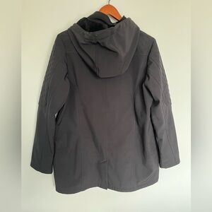Stay stylish and warm softshell with this black hooded jacket. Perfect for any occasion, lily Morgan size large EUC