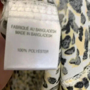 Lightweight material will make this perfect for hot days. Black and yellow print on ivory background. Simple design- scooped neckline and small slits on either side at the bottom.