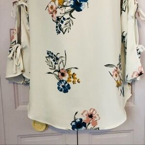 Lily Morgan open bell sleeves with ties. Floral flowing blouse. Feminine styling. Size small.