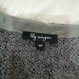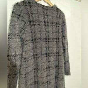 Lily Morgan women’s dark gray plaid open front long hairy sweater cardigan s- SP