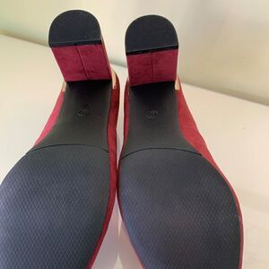New without tags. Never worn pumps from Lily Morgan, size 9, burgundy faux suede with gold heel detail. Classic 3 inch heeled pump for all occasions. Great with jeans, day wear and can go into evening. Finish your look with a few complementing accessories from Our Closet (some suggestions shown all listed and priced separately), make a bundle and save. There's always something Fresh at Lemon Squeezy Shopđ