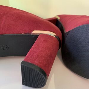 Lily Morgan Szâ9 burgundy faux suede pump, gold heel detail, neverâworn