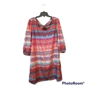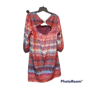 Sweet dress by Lily Rose is size XL and features sleeves gathered at cuffs and a fun bow on the back. 20" armpit to armpit approximately and 35" shoulder to hem. polyester EUC