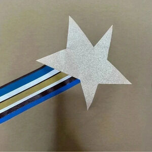 Tan in colour with fun, sparkly shooting star design on the front.