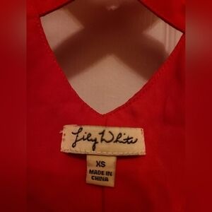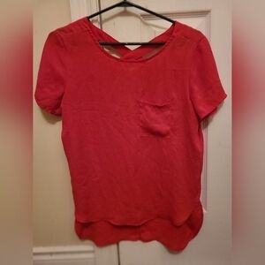 Lily White Womens Business Solid Red High Low Blouse W/ Pocket and CrissCross XS