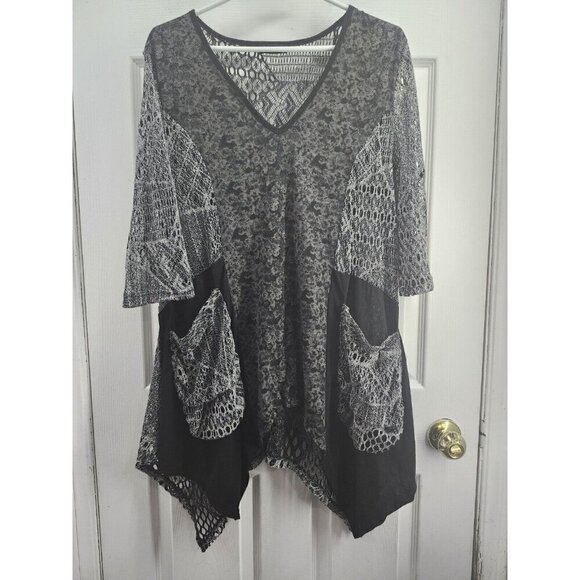 Lily by Firmiana Gothic Witchy Lagenlook Open Knit Tunic Black Velvet XL