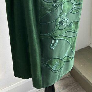 Lim Ying Ying Emerald Silk Embroidered Midi Skirt With Lining & Back Slit – US M