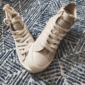 Rare find, limited edition sneakers with great rubber sole traction and smooth suede exterior, fabric interior. Medium support cushion that supports your feet. Side zipper opening. All in perfect condition.