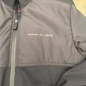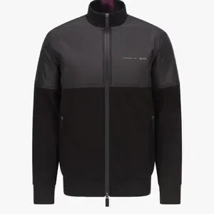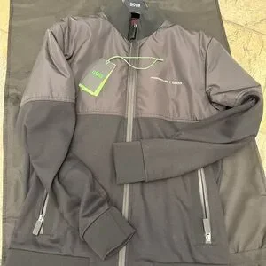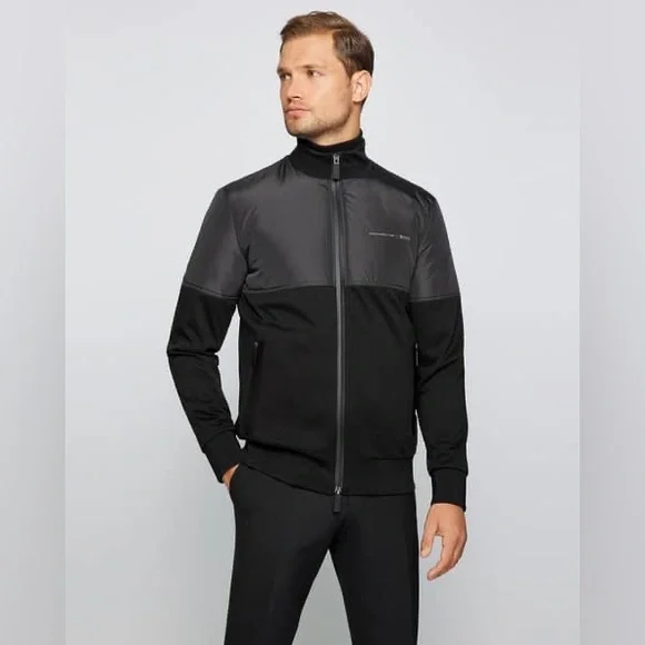 Elegant jacket with a sleek design. Features a two-tone black and gray color scheme. Ideal for a modern look.