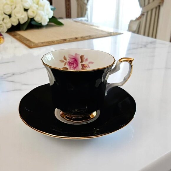 Limited edition Birks Elizabethan Black teacup and saucer EUC