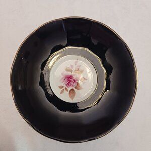 Exotic & Rare Limited edition made for Birks Elizabethan. Beautiful black with gold foot and red cabbage rose design.