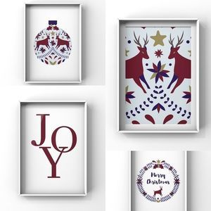 Limited edition modern minimalist Christmas illustration ornament art print set