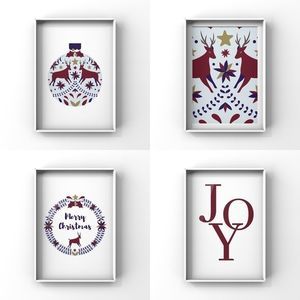 Limited edition modern minimalist Christmas illustration ornament art print set of four.