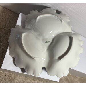 Limoges France Handled Divided Dish Blue Porcelain 11" Gold Trim Scalloped Edge