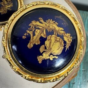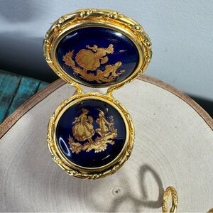 Limoges Hand Paint Gold Courting Figure Patio Miniature Furniture Table Chair Set. The chair is about 2.75" tall. The table is about 2"+. The item set is in good condition.