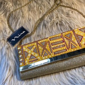 Great for upcoming parties. It’s NWT but there is a small flaw on BACK of purse. See picture.