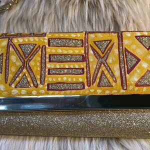 Lina Labella Platino Baby Gold Glitter Clotch Bag with strap