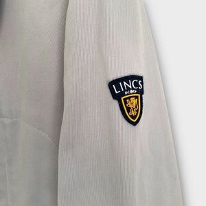 Canvas utility style chore jacket by Lincs DC & Co. Features a collared design, button front closure, and multiple exterior and interior pockets for functionality. The structured yet relaxed fit makes it a versatile layering piece for transitional seasons. Lined interior with contrast piping and a Lincs DC & Co logo patch on the sleeve add subtle detailing.