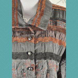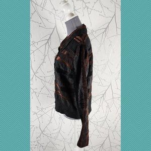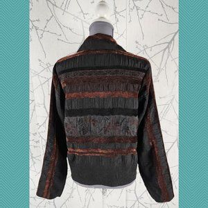 Linda Lundstrom Black Crinkle Embroidered Button Front Jacket